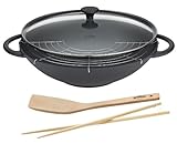 - Wok-Set mit Glasdeckel, schwarz, inkl. Holzwender, Chopsticks und Abtropfgitter